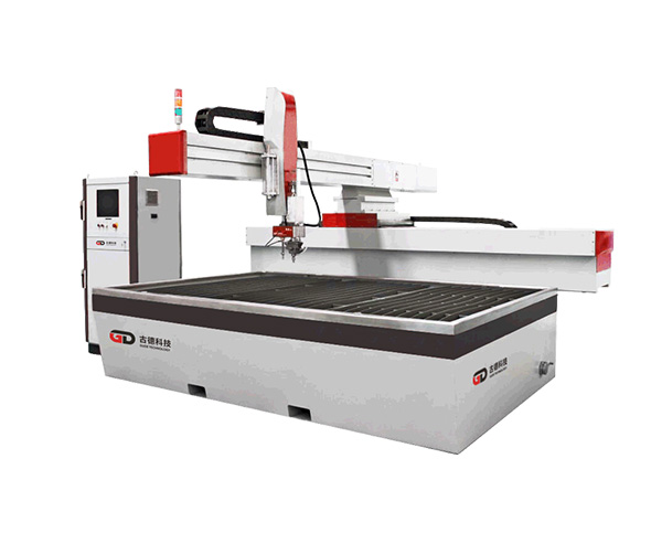 四軸水切割機是古德率先開發(fā)的新一代用于陶瓷石材拼花等領域的新型切割機。X4-Ⅲ四軸水切割機采用“可調式斜邊切割控制機構”等發(fā)明專利技術(專利號:ZL 201110245675.9),在普通水切割機的基礎上增加了斜邊控制機構和四軸控制系統,通過調整偏擺軸的偏擺角度,并配合回轉軸的轉動來控制切割頭的姿態(tài),使得石材陶瓷切割獲得反方向的切口斜邊,拼接時省去了人工打磨這一勞動強度最大、花費時間最長、粉塵和噪音污染最為嚴重的環(huán)節(jié)。四軸水刀不僅大大提升了石材陶瓷拼圖的品質,而且極古德提高了生產效率,降低了生產成本,是石材陶瓷拼花行業(yè)的一項革命。